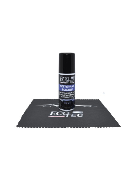 Solution efficace pour éliminer poussière et tâches grasses des écrans tactiles et LCD, fourni avec une microfibre pour un nettoyage sans trace et facile.