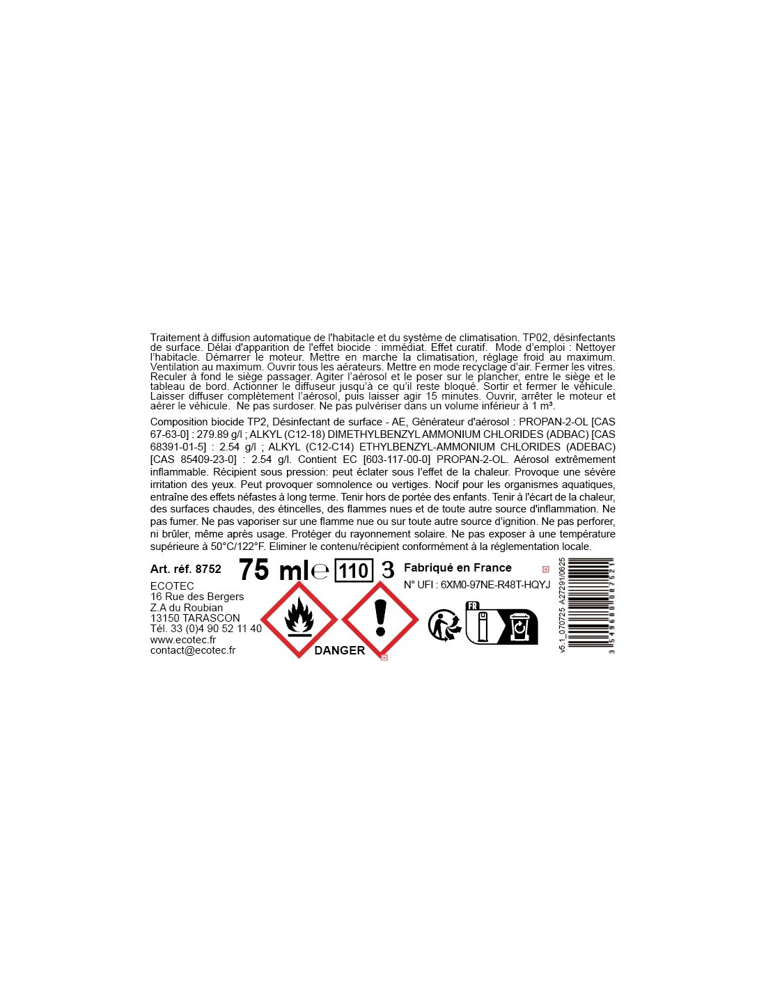 8752 - TRAITEMENT HABITACLE ET CLIM