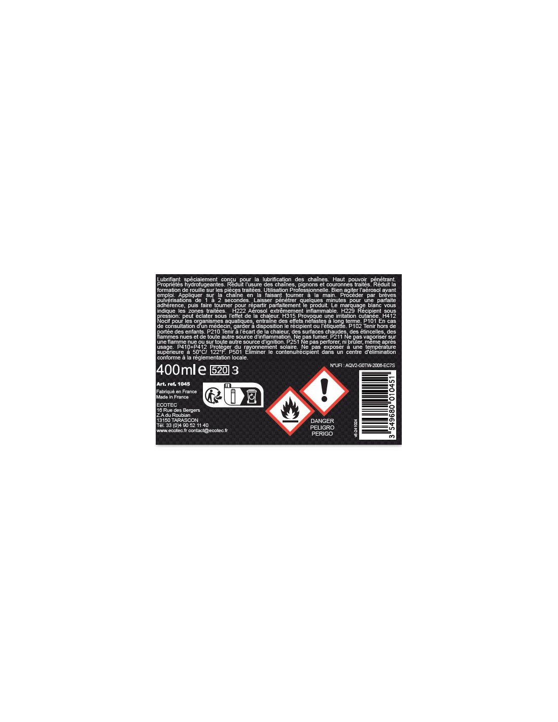 Le Lubrifiant Chaines Ecotec est un lubrifiant qui pénètre profondément dans la chaîne et fournit une lubrification longue durée.