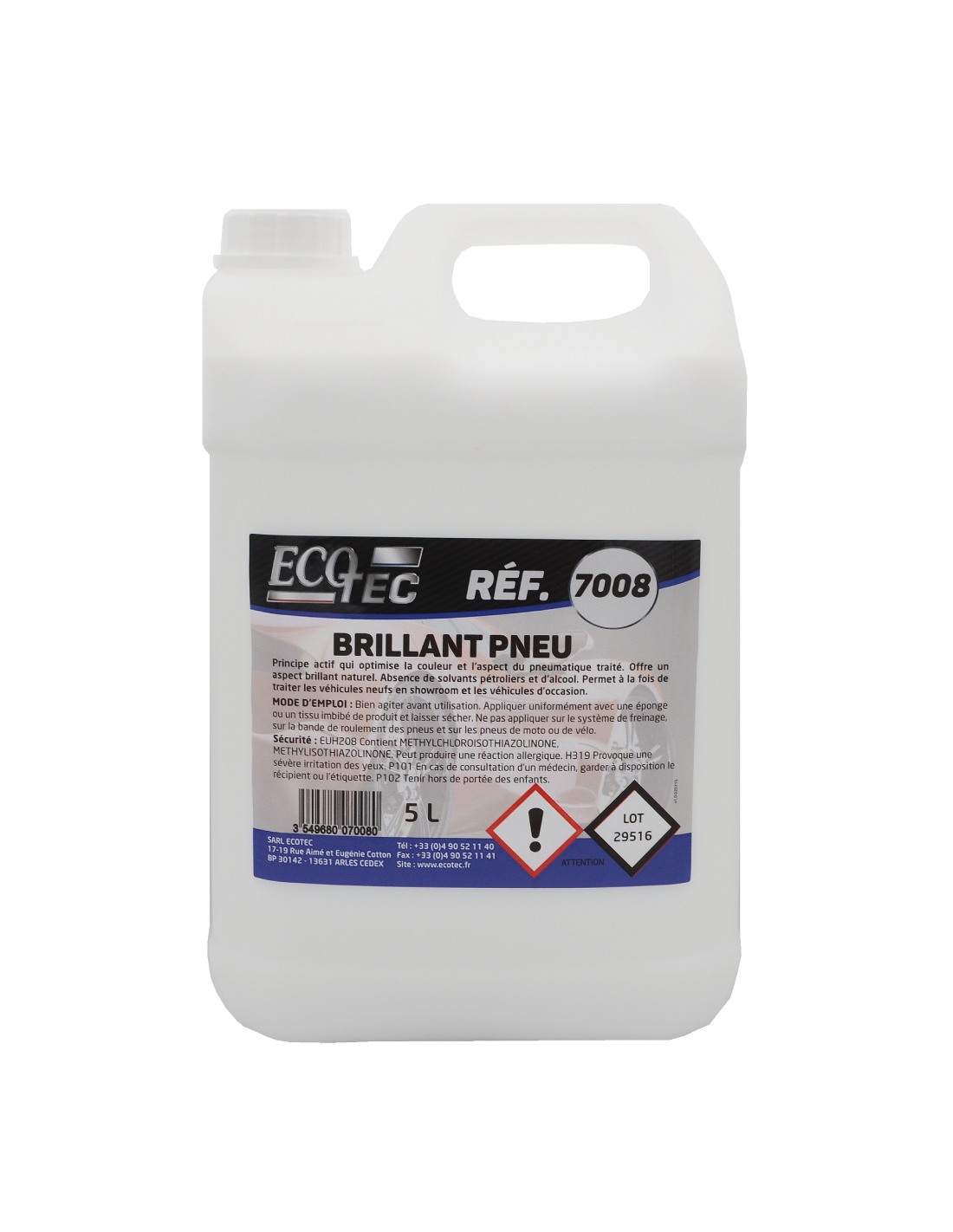 - Principe actif qui optimise la couleur et l'aspect du pneumatique traité.